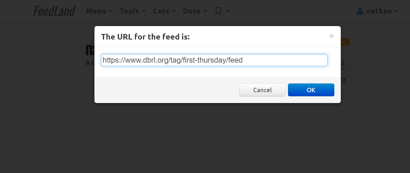 Then, we paste it into the box in FeedLand, and click OK. You are now subscribed.