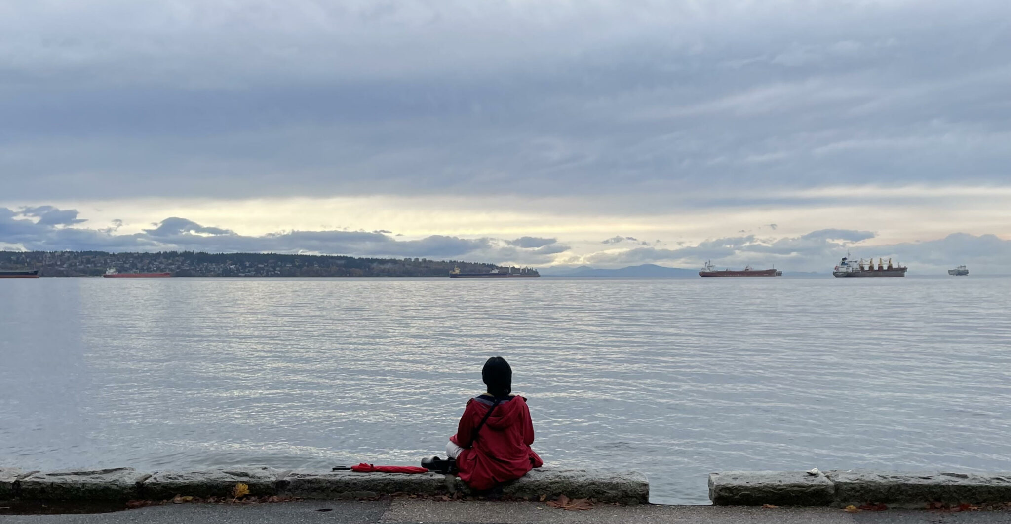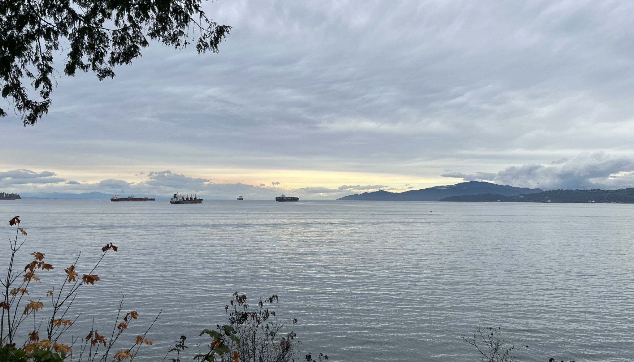 I find the rest of my family at the waterfront park. Our disparate rhythms come to rest before a silver-blue view that rinses the mind (across the surface, a hushed music).