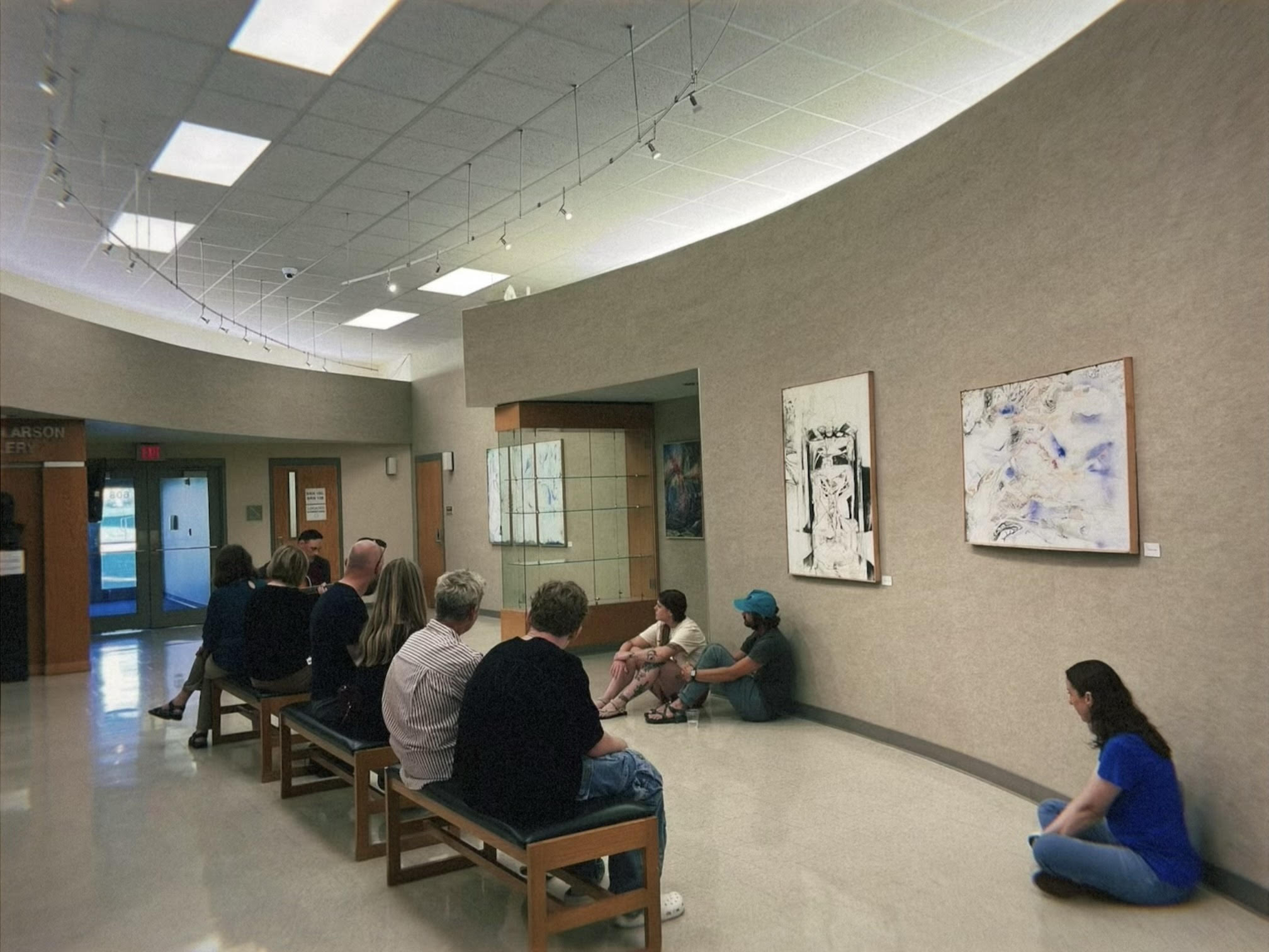 On Saturday, October 11, I visited the Sidney Larson Gallery at Columbia College to view the current exhibition, “Everything at the Same Time,” featuring sprawling, luminous works by local artist Caleb Crites. Crites spoke to a small group about the stories of these pieces, which will be on display through Wednesday, Oct. 22. For more information about art galleries and opportunities in Columbia, please visit DBRL’s Local Arts Guide.