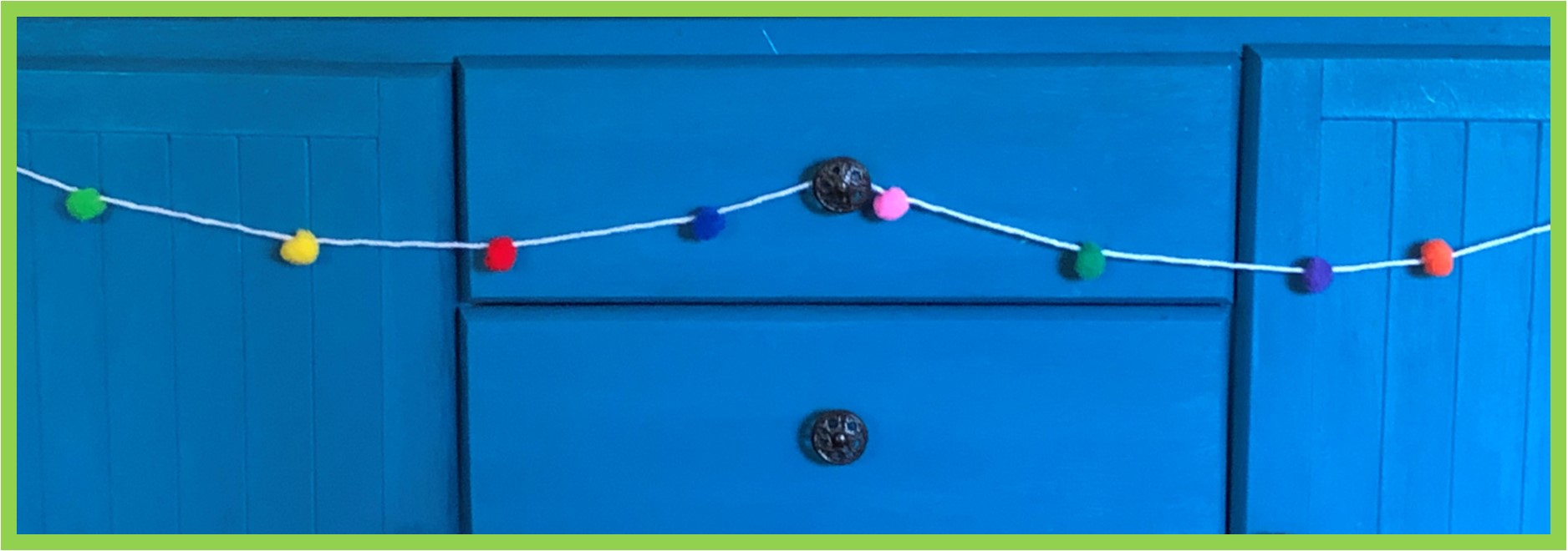 Flowers are blooming and fresh vegetables are here. Ah, the many beautiful colors of summer! Pompom garlands are colorful, quick and inexpensive. Use them as party decorations, hang them in a window or frame a doorway. All you need are pompoms, yarn and a needle with a large enough opening to string the yarn. We have provided all of these items in our next Crafternoon-To-Go kits which will be available on June 17.