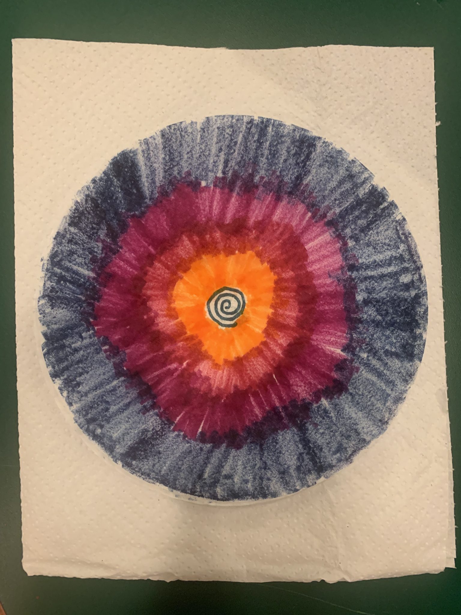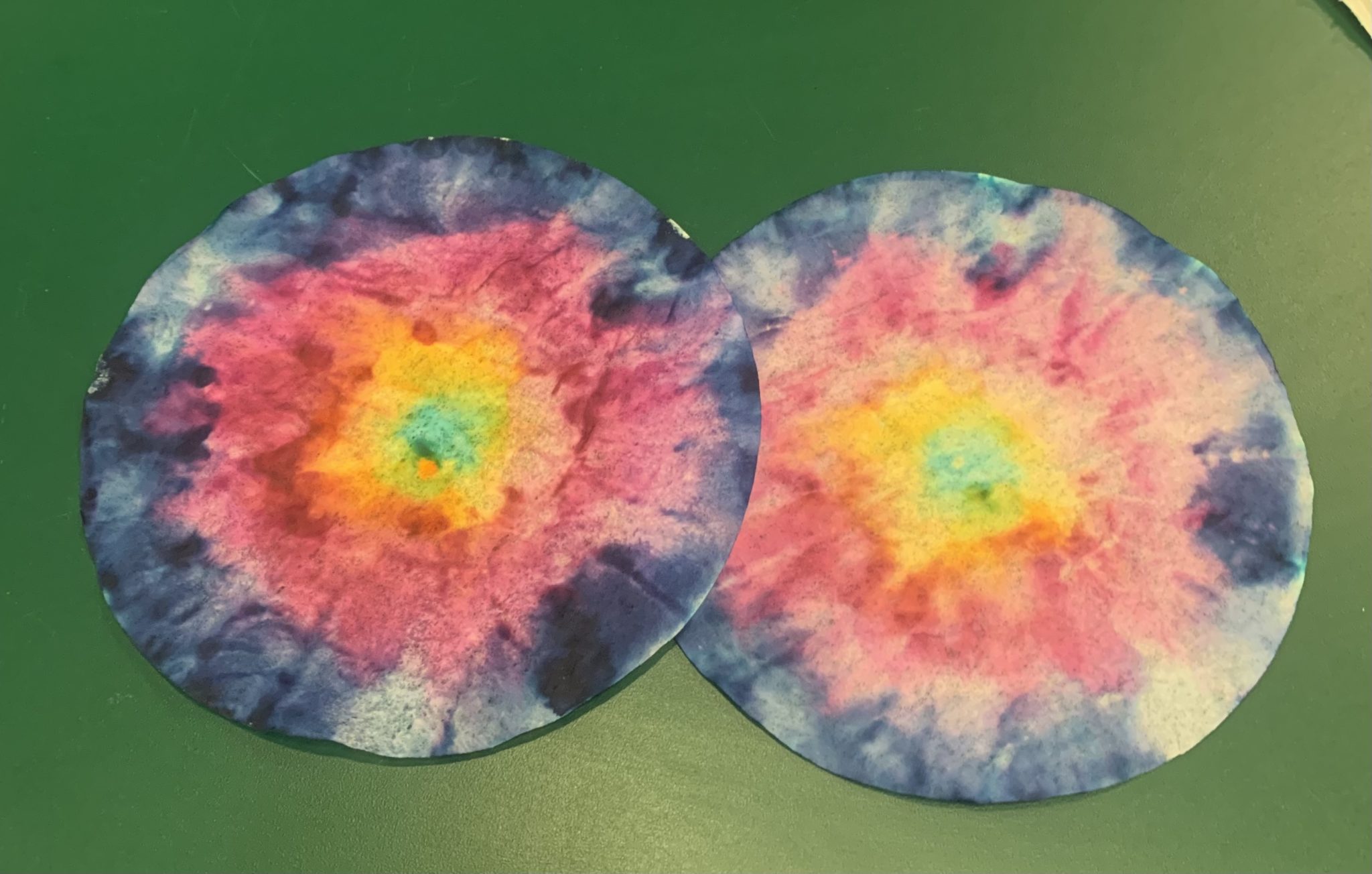 Here are two crafts to bring some sunshine into your lives as we march into the spring season. Practice fine motor and sewing skills by creating a vibrant sun using yarn and a paper plate. Hatch a lively tie-dyed butterfly with coffee filters, washable markers and a splash of water!
