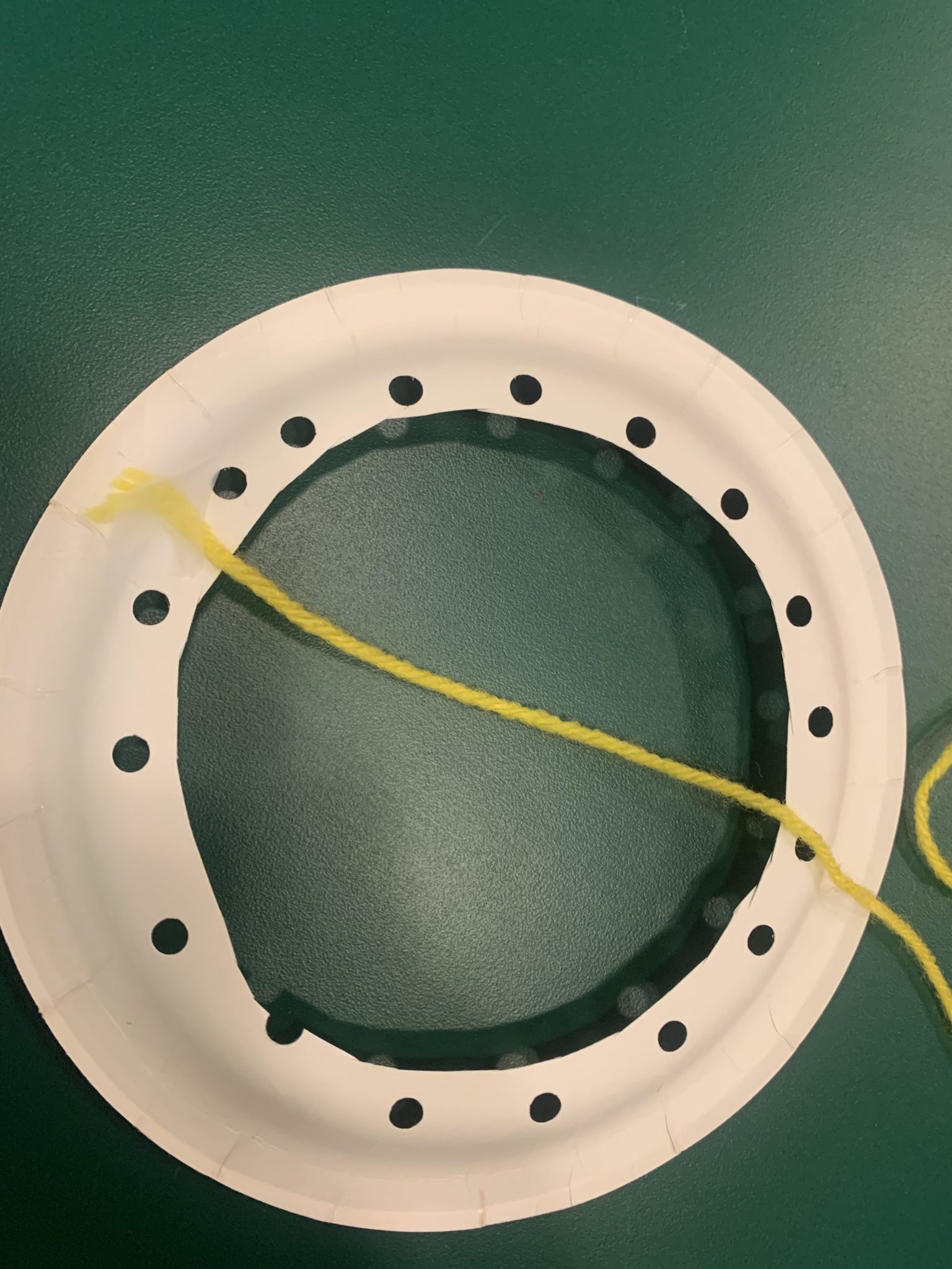 After the holes are punched, you are ready to start weaving! To keep the yarn in place, tape the start of the piece to the back of the plate.