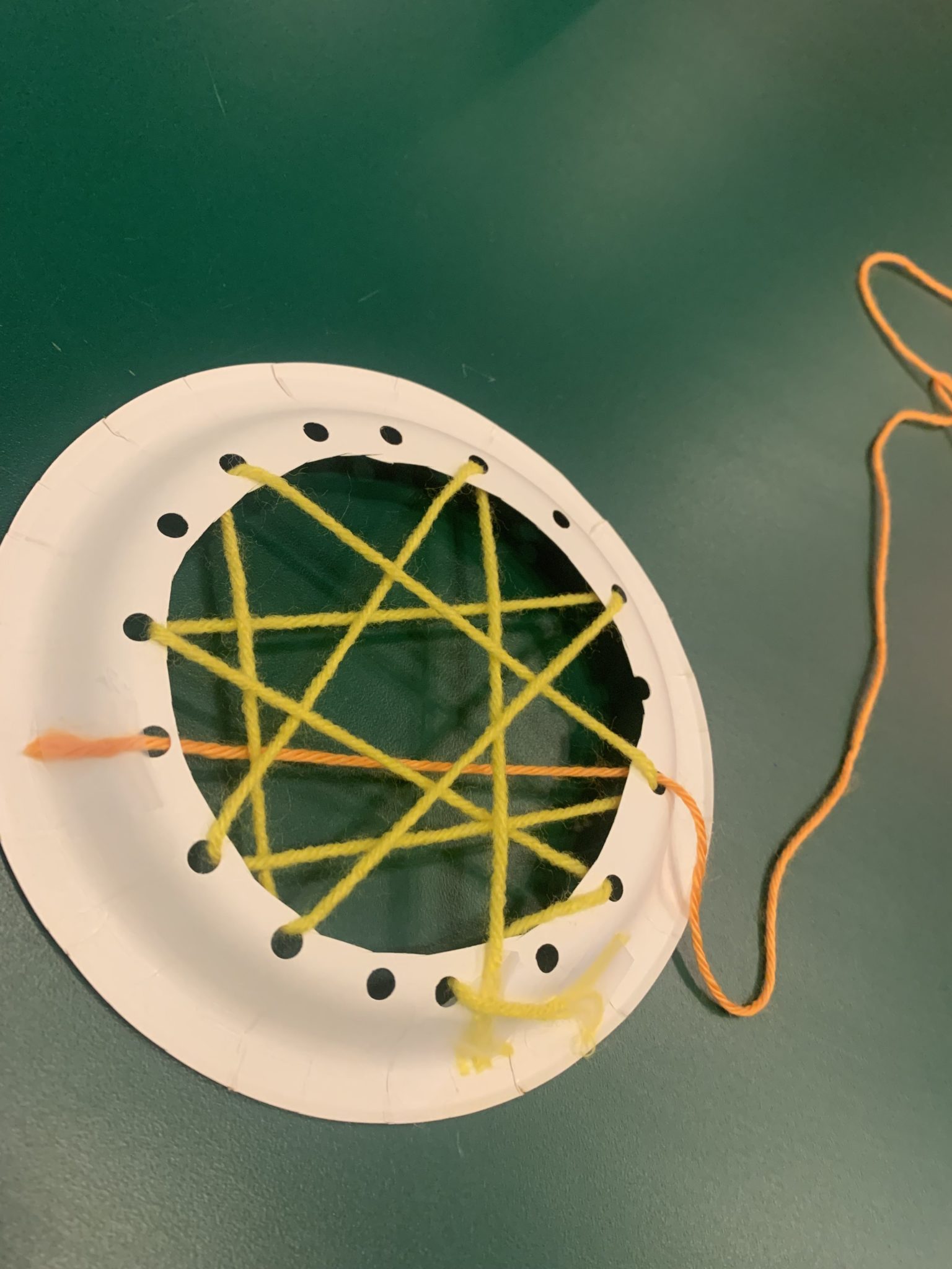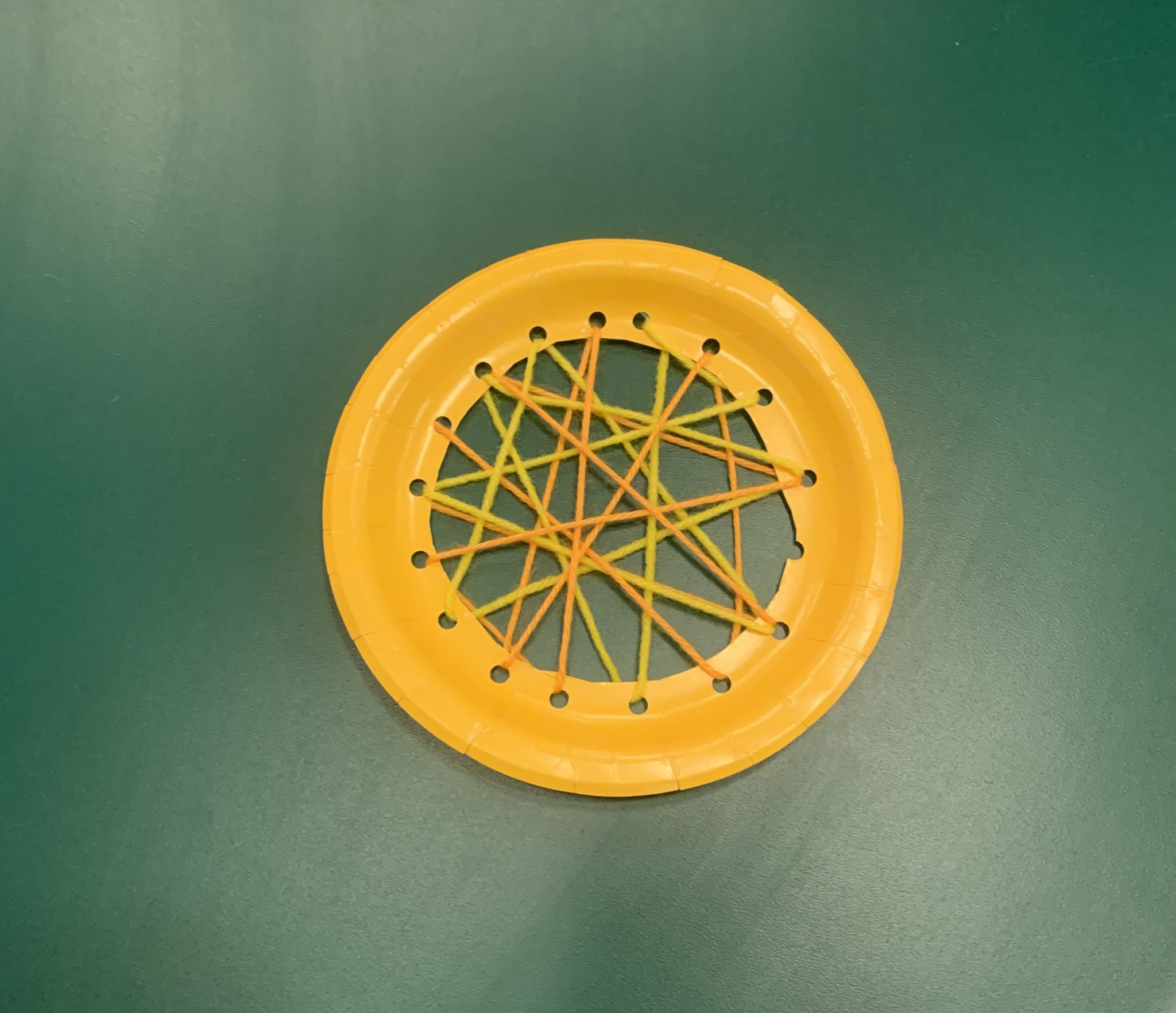 Once you’re finished weaving your yarn, your plate might look similar to the image above.