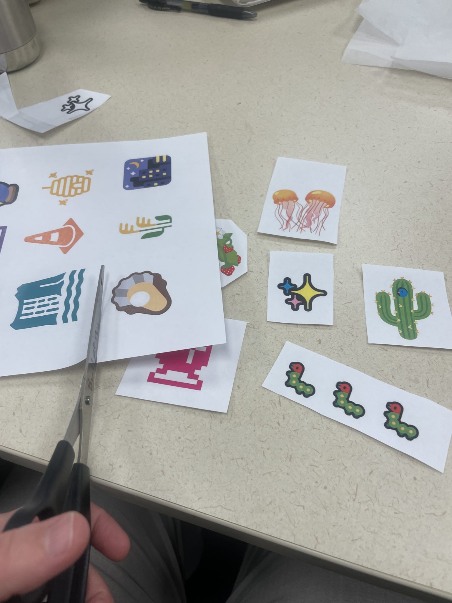 I decided it would be fun to make stickers out of various emojis and emoji fusion via Google. I sourced my emojis from Emojipedia and Microsoft Word/Window’s version of emojis; I also used some of the icons available in Microsoft Word. You could also make photocopies or scans of your own original drawings to then turn into stickers. If you’d like more ideas for what images you could make into stickers, check out this DIY Stickers booklist.